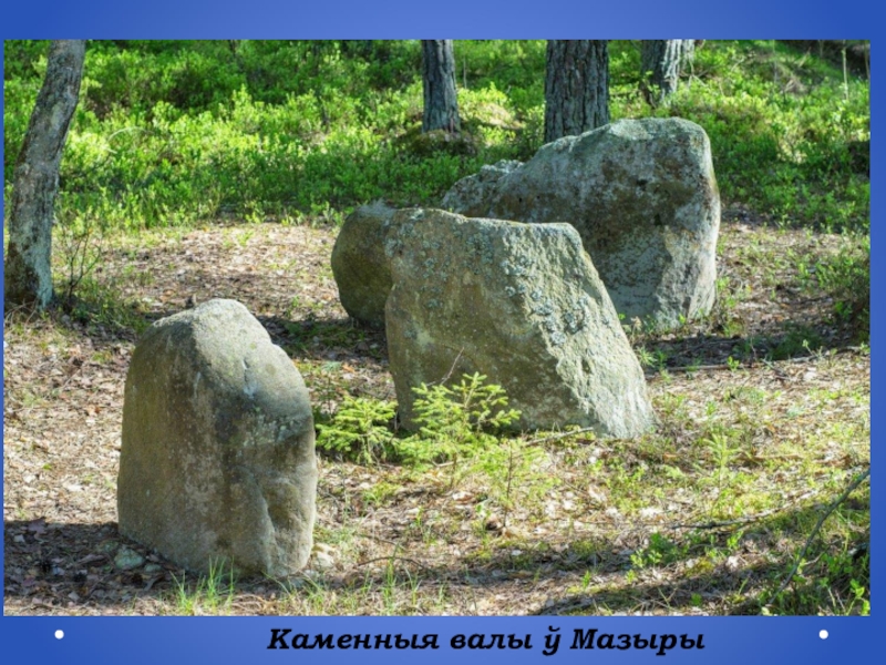 План:1. Камяні з імёнамі 2. Рух ледавіка 3. Музей валуноў 4. Курганы – пахавальныя помнікі.