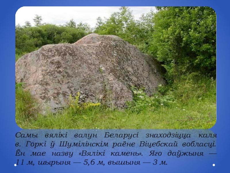 Слайд 14Самы вялікі валун Беларусі знаходзіцца каля в. Горкі ў Шумілінскім раёне