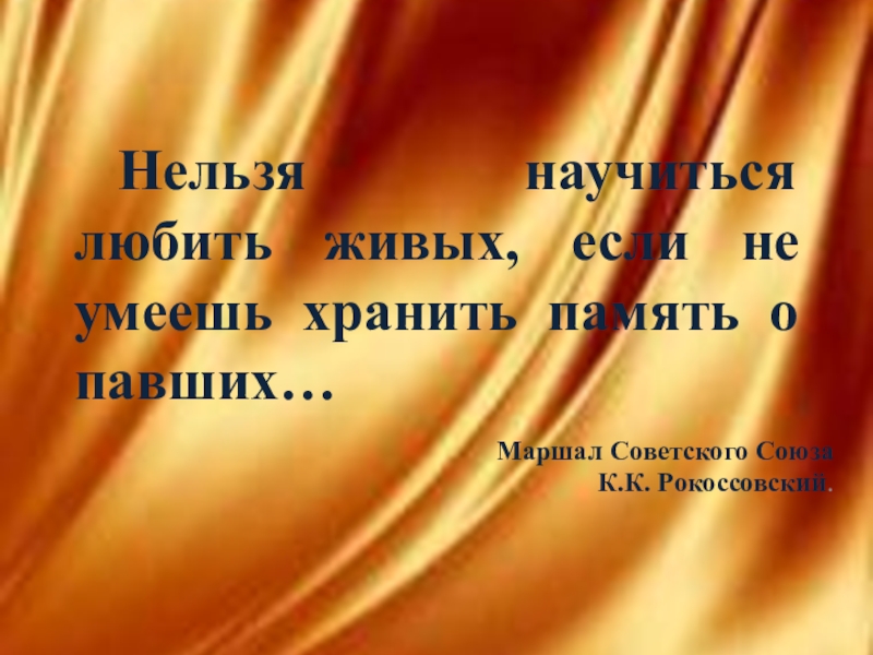Нельзя научиться любить живых, если не умеешь хранить память о павших…Маршал Советского Союза К.К. Рокоссовский.