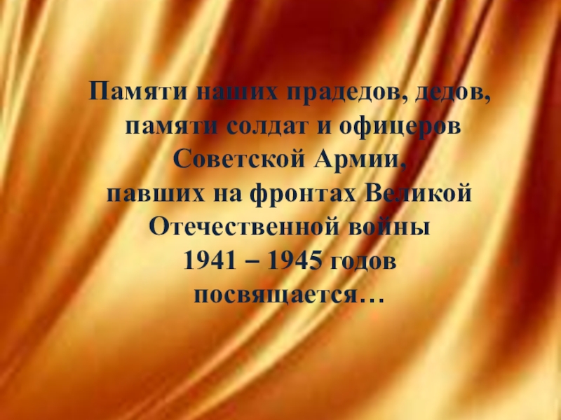 Памяти наших прадедов, дедов, памяти солдат и офицеров Советской Армии, павших на фронтах Великой Отечественной войны1941 –