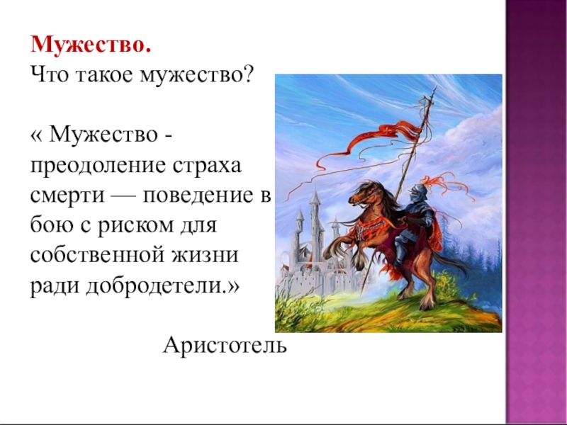 Мужество.  Что такое мужество? « Мужество - преодоление страха смерти — поведение в бою с риском для