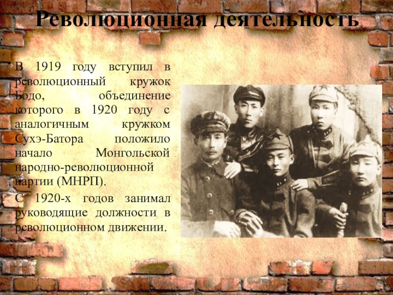 в 1920 году с аналогичным кружком Сухэ-Батора положило начало Монгольской народно-революционной партии (МНРП).