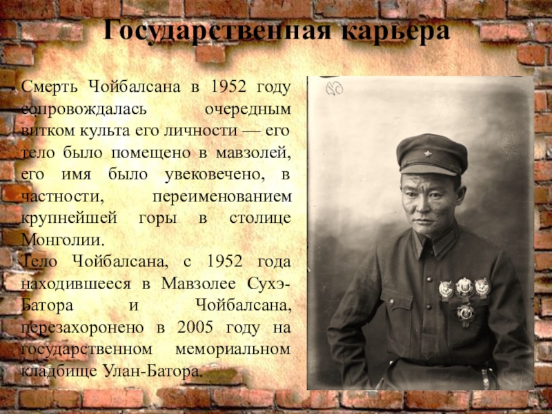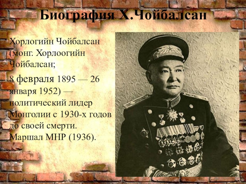 Слайд 1Маршал МНР Х. Чойбалсан
