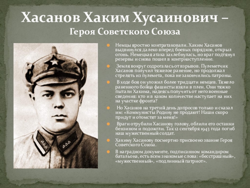 Немцы яростно контратаковали. Хаким Хасанов выдвинулся