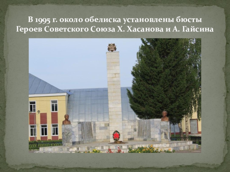 Слайд 4В 1995 г. около обелиска установлены бюсты Героев Советского Союза X.