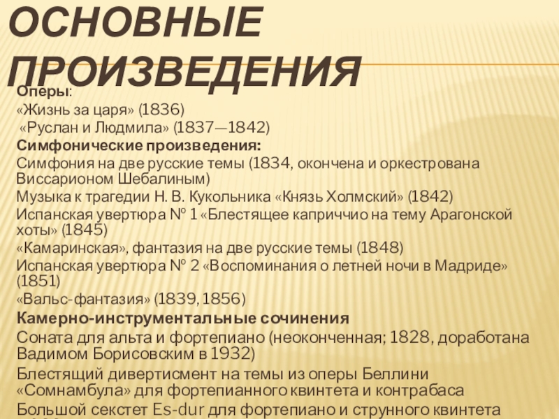 первую очередь известен своими романсами и оперой «Руслан и Людмила», которая вобрала и усилила впечатление сказочности, заложенное А.С. Пушкиным в одноименное произведение.
