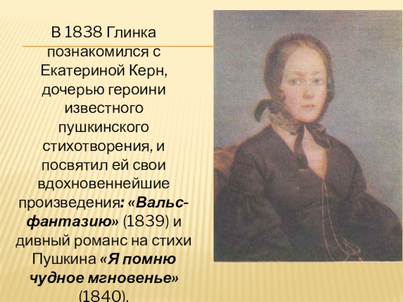 Слайд 12В 1838 Глинка познакомился с Екатериной Керн, дочерью героини известного