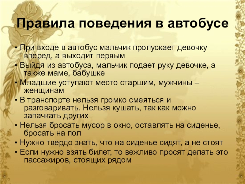 • Выйдя из автобуса, мальчик подает руку девочке, а также маме, бабушке