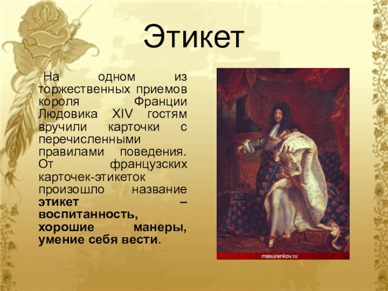 карточки с перечисленными правилами поведения. От французских карточек-этикеток произошло название этикет – воспитанность, хорошие манеры, умение себя вести.
