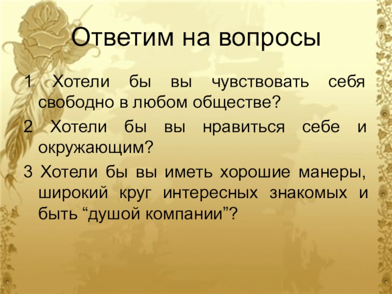 3 Хотели бы вы иметь хорошие манеры, широкий круг интересных знакомых и быть “душой компании”?