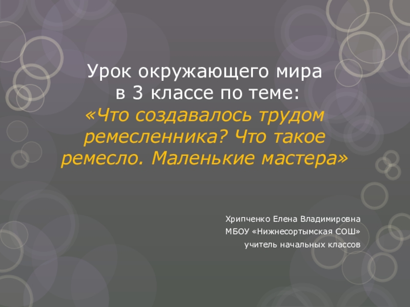 Цель: создание условий для формирования представлений учащихся о разнообразии ремёсел в России.