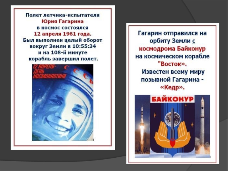 Советского Союза, а начиная с 12 апреля 1962 года день полёта Гагарина в космос был объявлен праздником — Днём космонавтики.