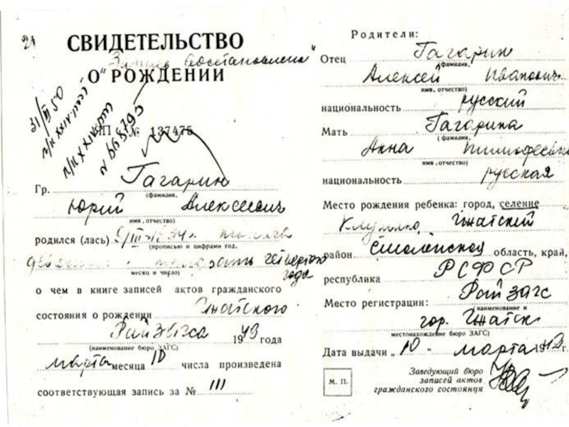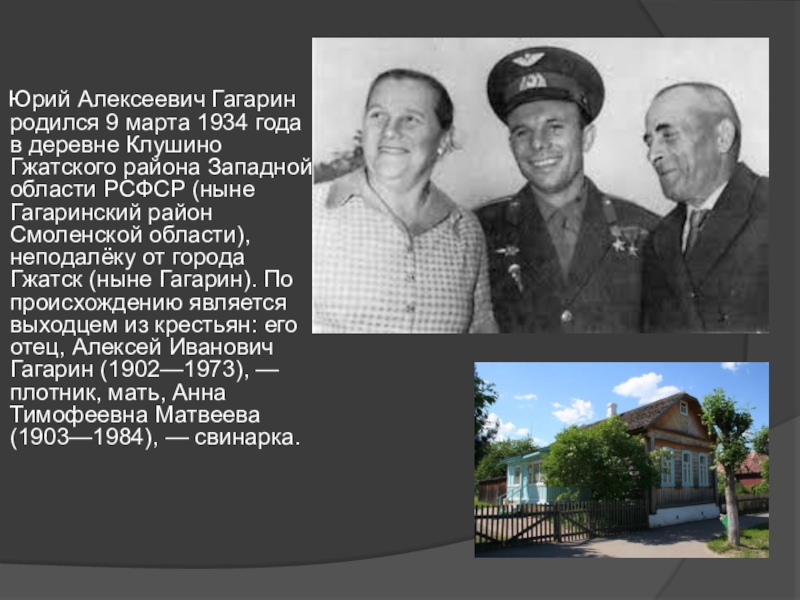 Слайд 3 Юрий Алексеевич Гагарин родился 9 марта 1934 года