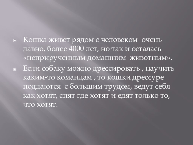 Слайд 7Кошка живет рядом с человеком очень давно, более 4000 лет, но