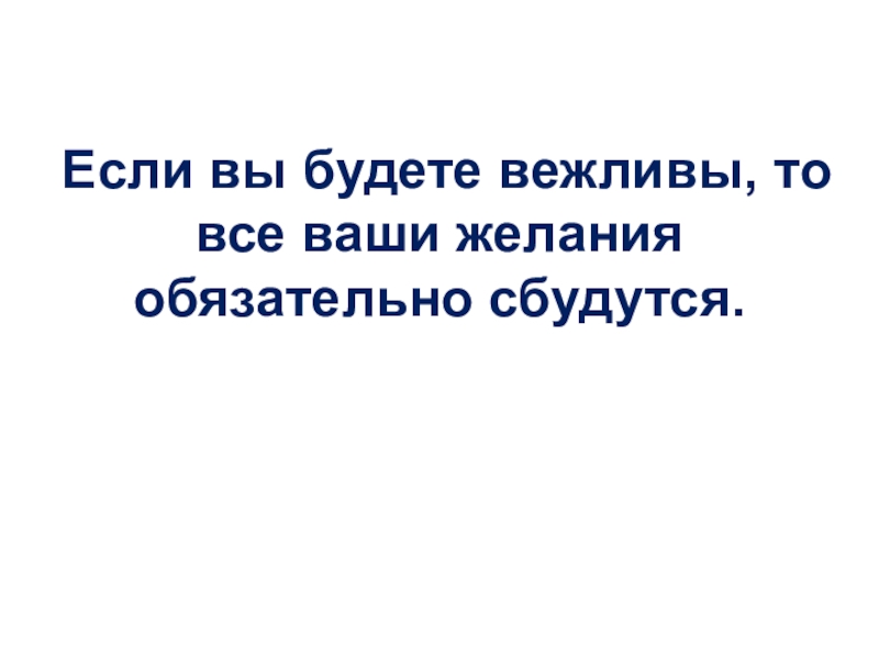 Слайд 36Если вы будете вежливы, то все ваши желания обязательно сбудутся.