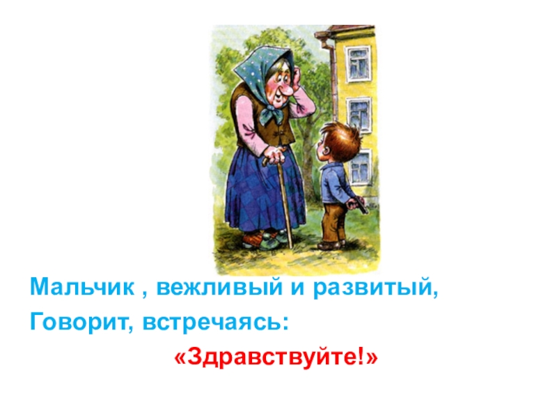 Мальчик , вежливый и развитый, Говорит, встречаясь: