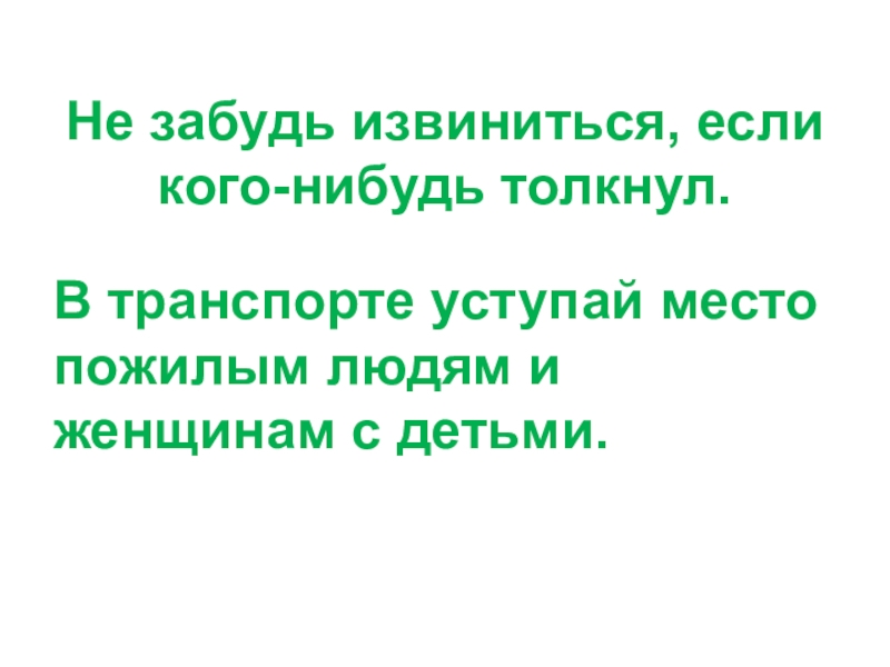 Не забудь извиниться, если кого-нибудь толкнул.В транспорте уступай место пожилым людям и женщинам с детьми.