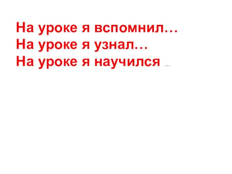На уроке я вспомнил…На уроке я узнал…На уроке я научился …