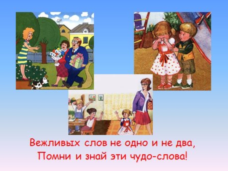 открываются! Пусть оно почаще всюду повторяется. Помните, как азбуку, Как дважды два: «Спасибо» и «пожалуйста»- Волшебные слова.