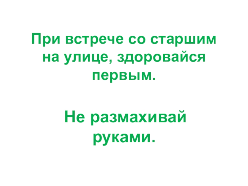 Слайд 31При встрече со старшим на улице, здоровайся первым.