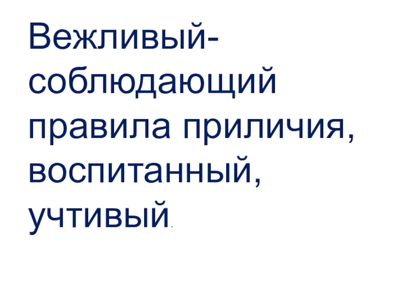 Вежливый- соблюдающий правила приличия, воспитанный, учтивый.