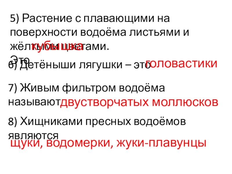 8) Хищниками пресных водоёмов являются