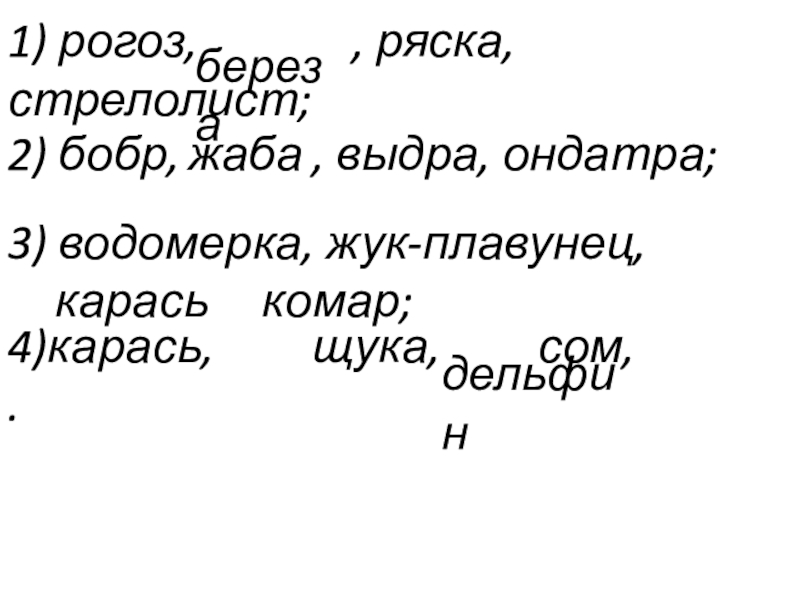 4)карась, щука, сом, .
