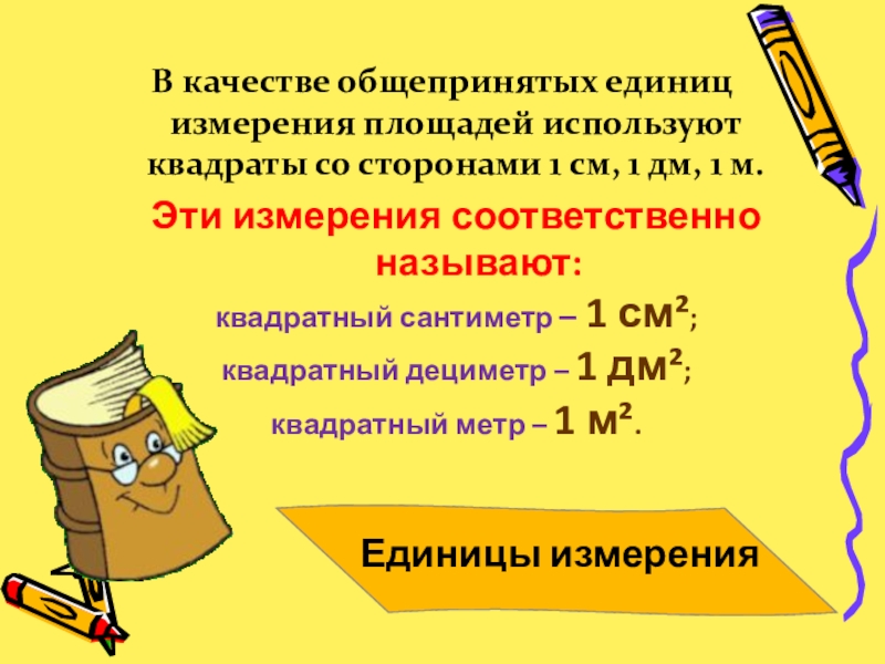 квадратный дециметр – 1 дм²;