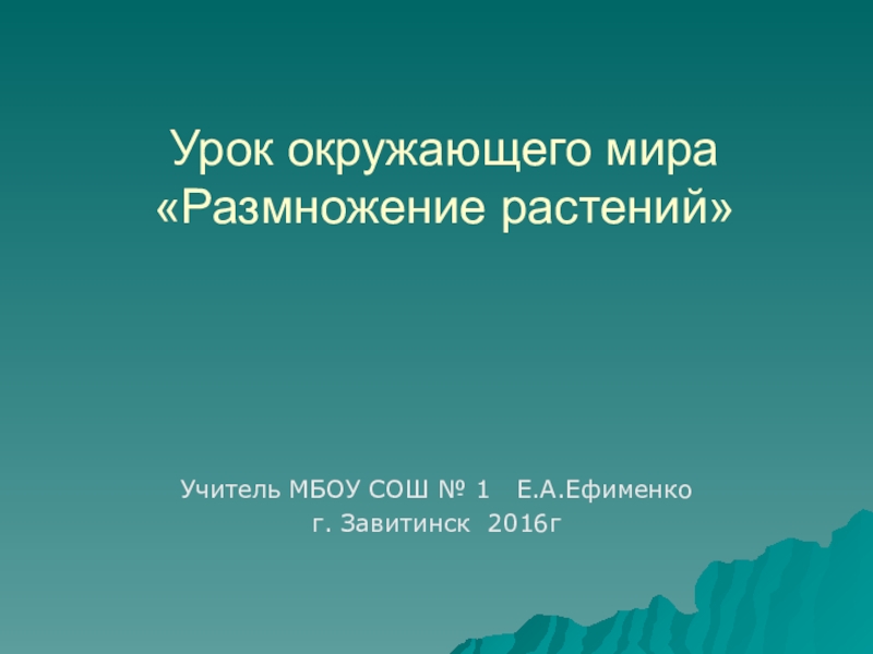 Урок окружающего мира  «Размножение растений» Учитель МБОУ СОШ № 1  Е.А.Ефименко г. Завитинск 2016г