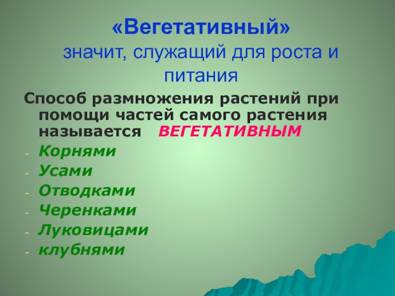 Слайд 12 «Вегетативный» значит, служащий для роста и питания