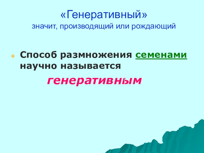 «Генеративный» значит, производящий или рождающийСпособ размножения семенами научно называется       генеративным