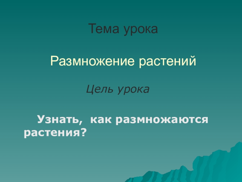 Тема урока  Размножение растений          Цель урока