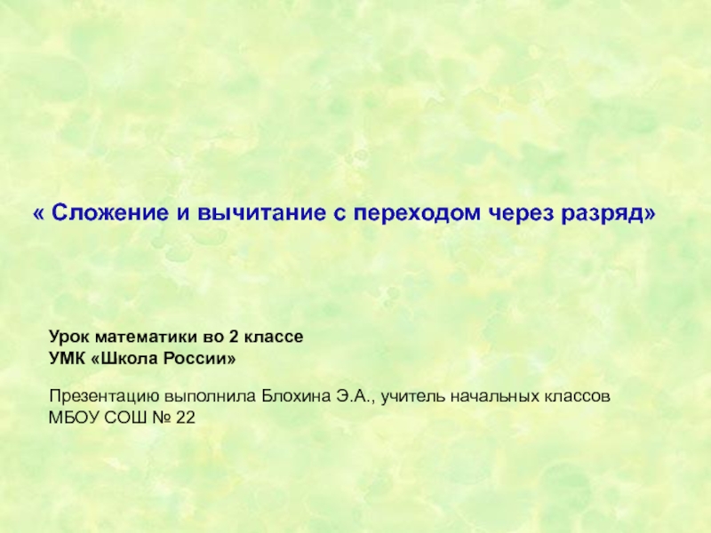 Презентацию выполнила Блохина Э.А., учитель начальных классов