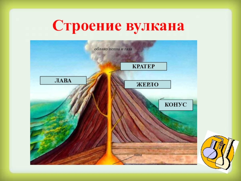 Строение вулканаКРАТЕРЖЕРЛОЛАВАКОНУС