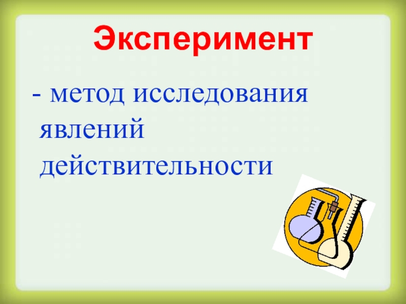 Этапы проведения эксперимента 1. Определить цель 2. Подготовить оборудование, необходимые принадлежности 3. Провести опыт 4. Зафиксировать результат
