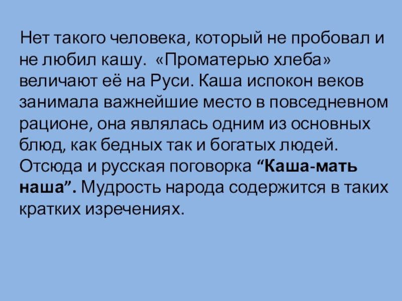 Нет такого человека, который не пробовал и не любил кашу. «Проматерью хлеба»