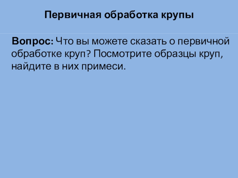 Вопрос: Что вы можете сказать о первичной обработке круп? Посмотрите