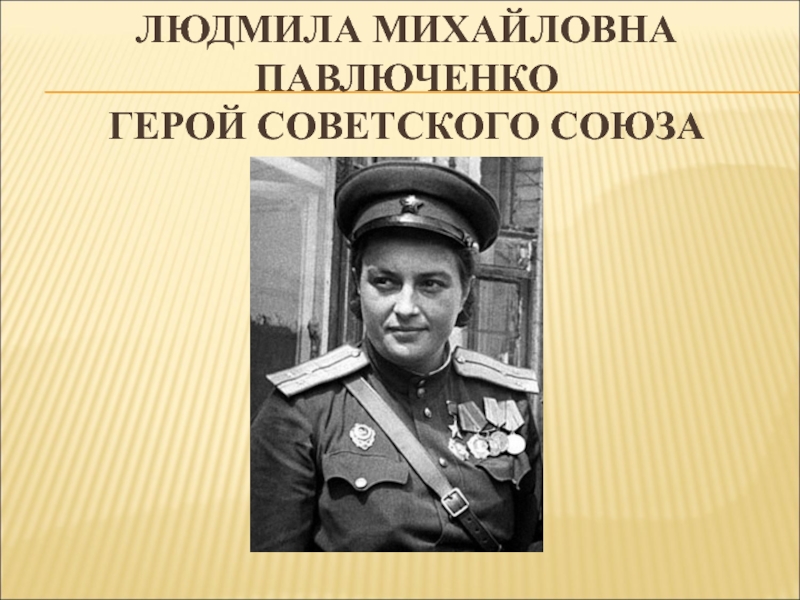 Слайд 11ЛЮДМИЛА МИХАЙЛОВНА ПАВЛЮЧЕНКО ГЕРОЙ СОВЕТСКОГО СОЮЗА