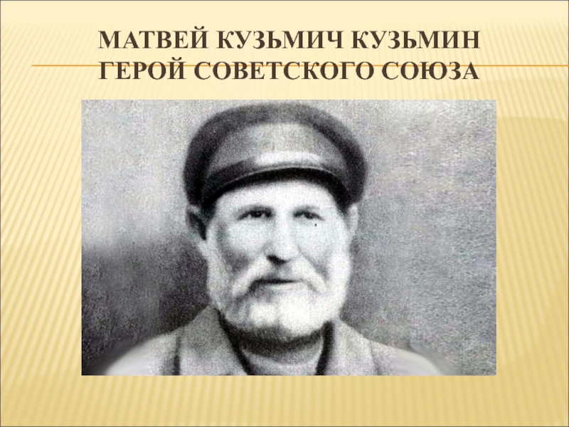 Слайд 10МАТВЕЙ КУЗЬМИЧ КУЗЬМИН ГЕРОЙ СОВЕТСКОГО СОЮЗА