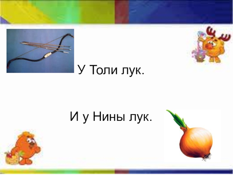 Слайд 11У Толи лук. И у Нины лук.