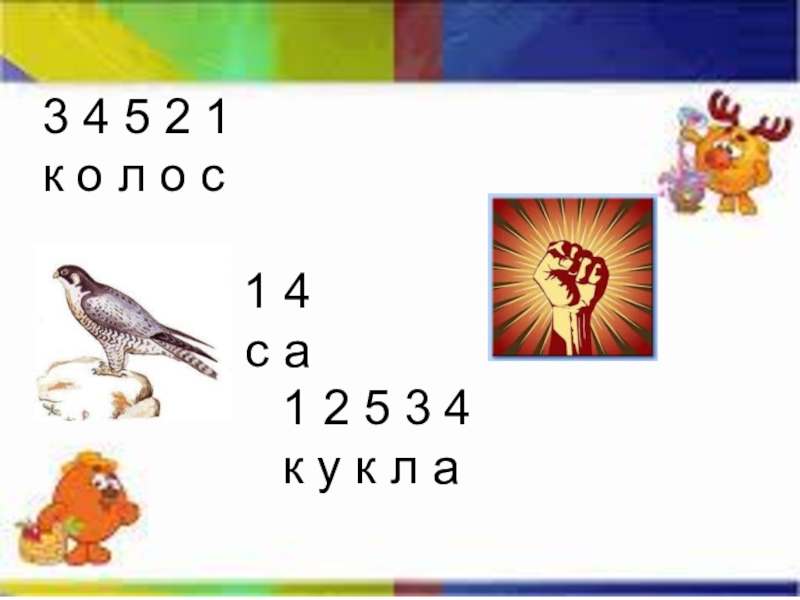 3 4 5 2 1  к о л о с   			3 2 1 4