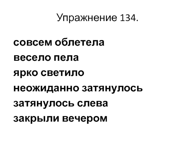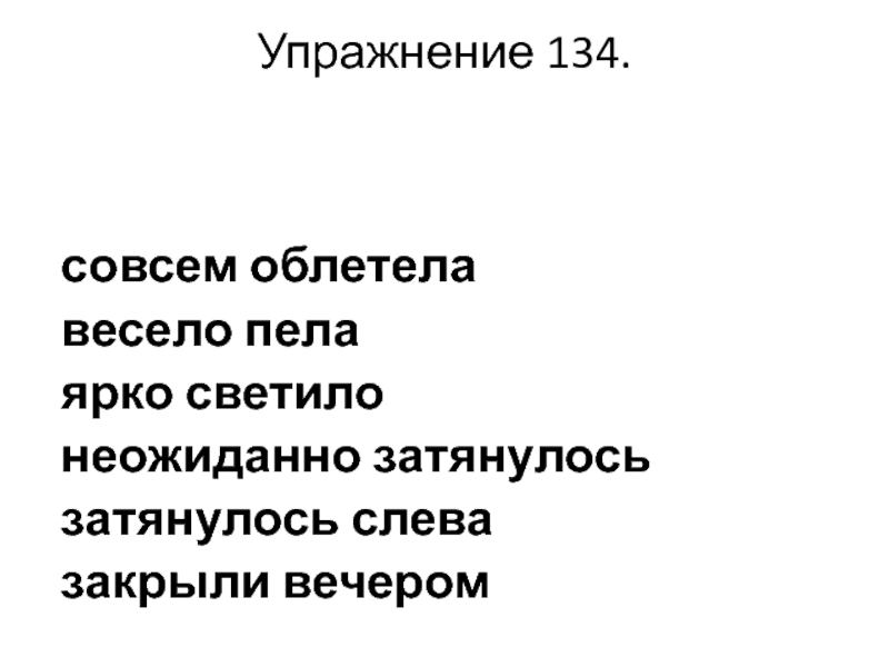 Упражнение 134.совсем облетелавесело пелаярко светилонеожиданно затянулосьзатянулось слевазакрыли вечером