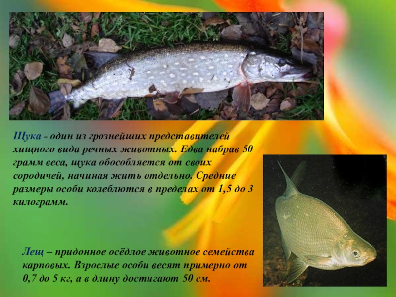 Щука - один из грознейших представителей хищного вида речных животных. Едва набрав 50 грамм веса, щука обособляется от своих сородичей, начиная жить отдельно. Средние размеры особи колеблются в пределах от 1,5 до 3 килограмм.