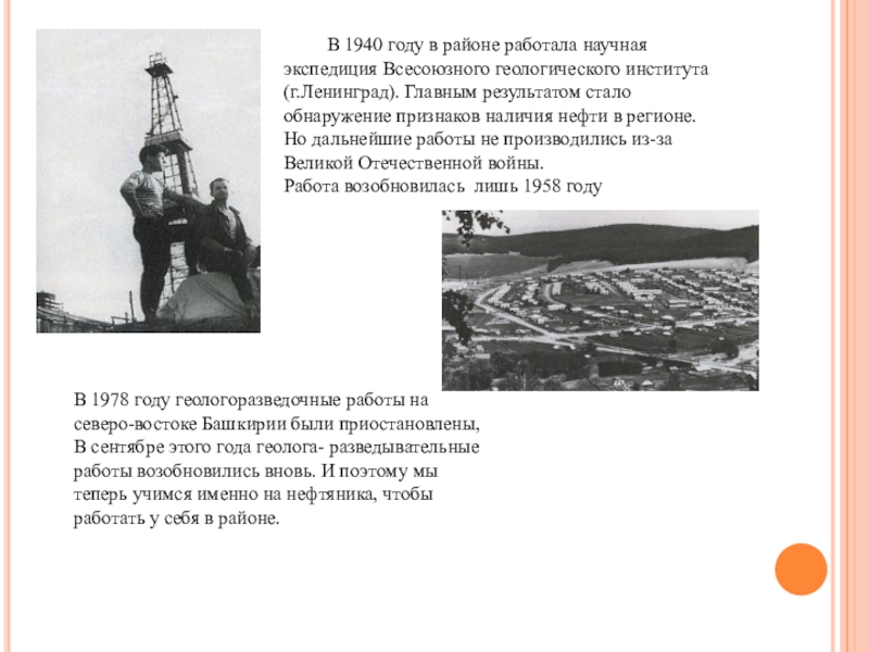 В сентябре этого года геолога- разведывательные работы возобновились вновь. И поэтому мы теперь учимся именно на нефтяника, чтобы работать у себя в районе.