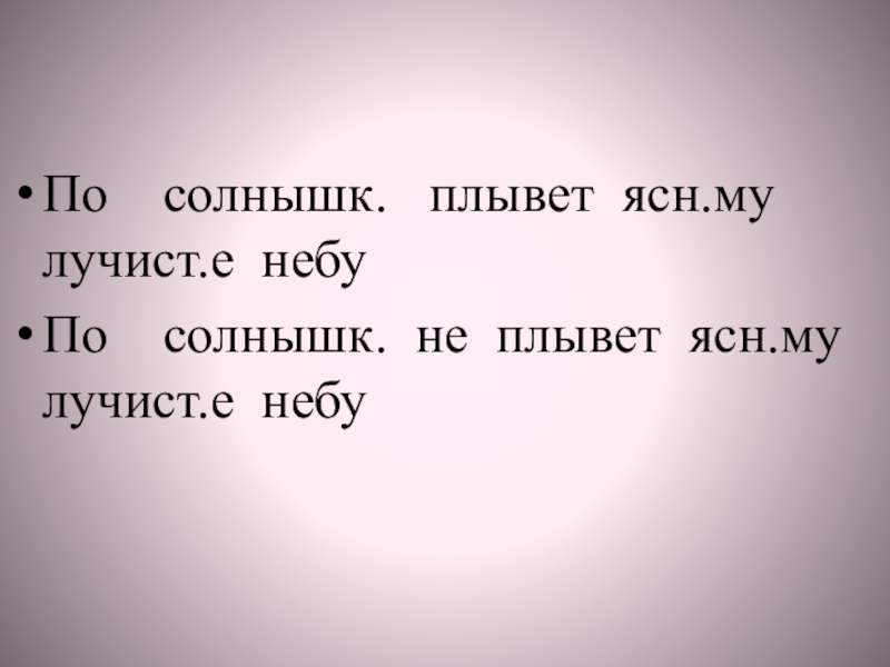 Слайд 3По солнышк. плывет ясн.му лучист.е небу