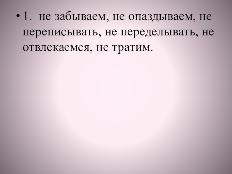 1. не забываем, не опаздываем, не переписывать, не переделывать, не отвлекаемся, не тратим.