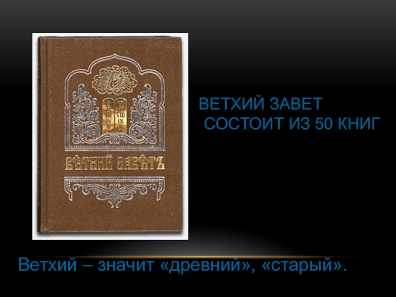 Ветхий Завет состоит из 50 книг Ветхий – значит «древний», «старый».