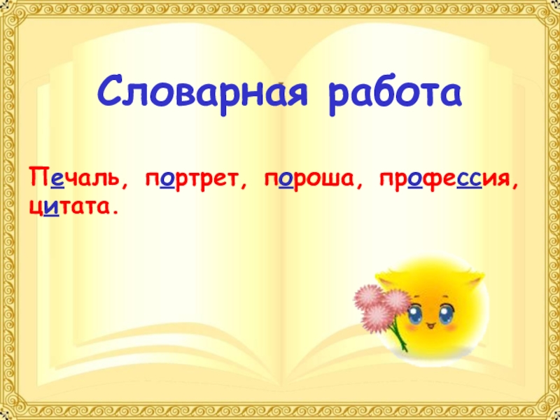 Словарная работаПечаль, портрет, пороша, профессия, цитата.