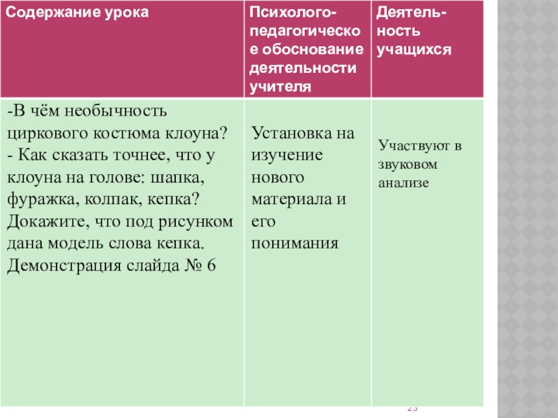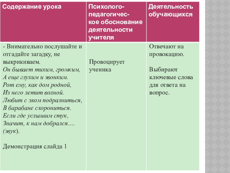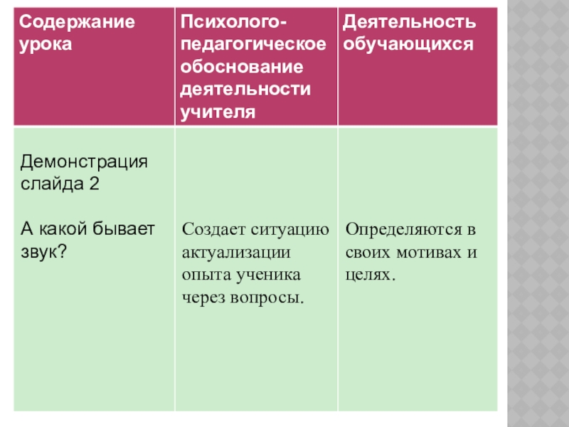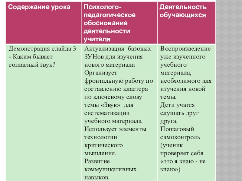 В урок были включены игровые технологии, что способствует повышению мотивации к учению. Для систематизации учебного материала я использовала элементы критического мышления: составление кластера по ключевому слову «звук».