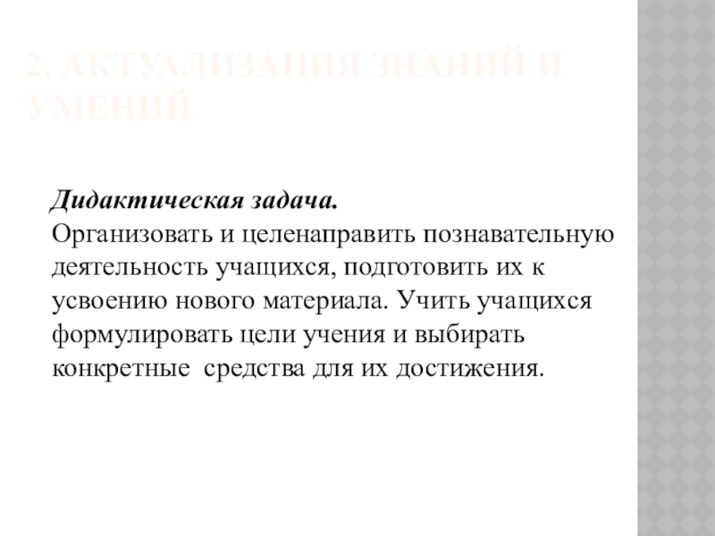 подготовить их к усвоению нового материала. Учить учащихся формулировать цели учения и выбирать конкретные средства для их достижения.